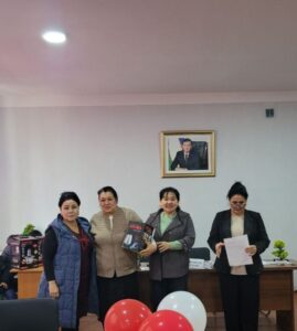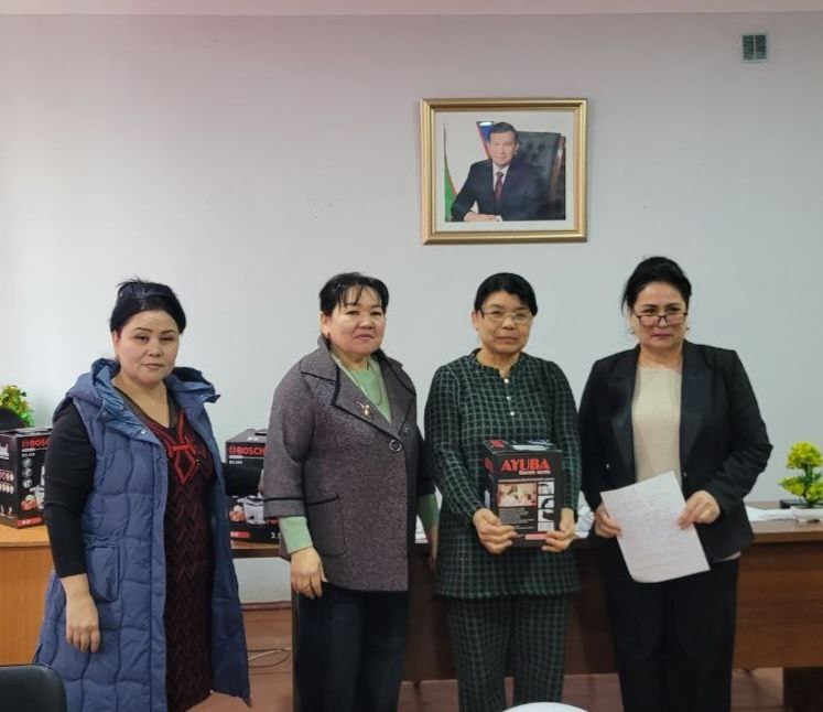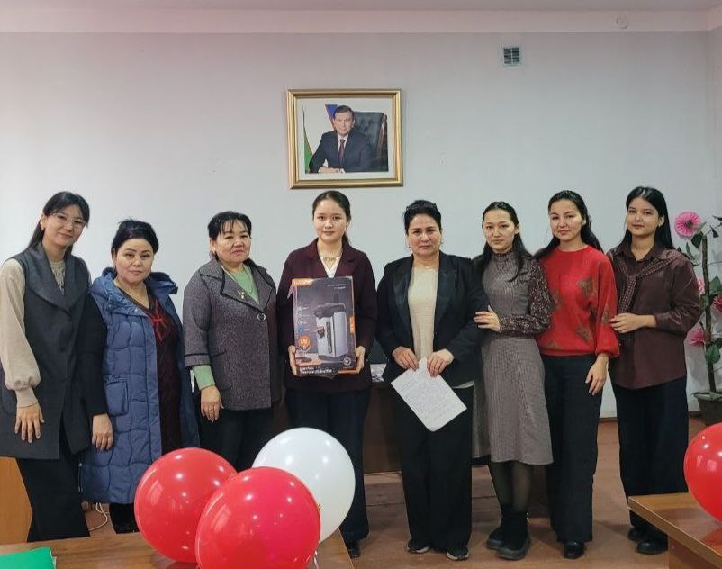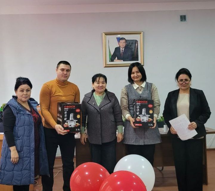4- Интеллектуал ўйин ғолиблари Ўзбекистон таълим ва фан ходимлари касаба уюшмаси Тахиатош тумани бўлинмаси Кенгаши томонидан тайёрланган эсдалик совғалари билан рағбатлантирилди